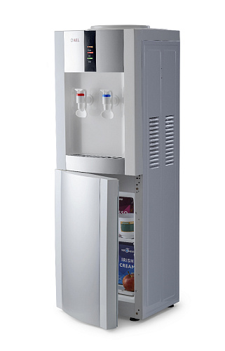 Напольный кулер с компрессорным охлаждением и с шкафчиком. Цвет белый с серебряными вставками. Модель отличает стильный дизайн и широкий функционал. Кулер с высокой производительностью, благодаря чему за один час можно получить 5 литров горячей и 2 литра холодной воды. Для быстрого и удобного наливания воды в стакан или чашку предусмотрены два крана (холодный и горячий) с механизмом «нажим кружкой». Устройство подойдет для оснащения офисов и предприятий с большим количеством сотрудников.