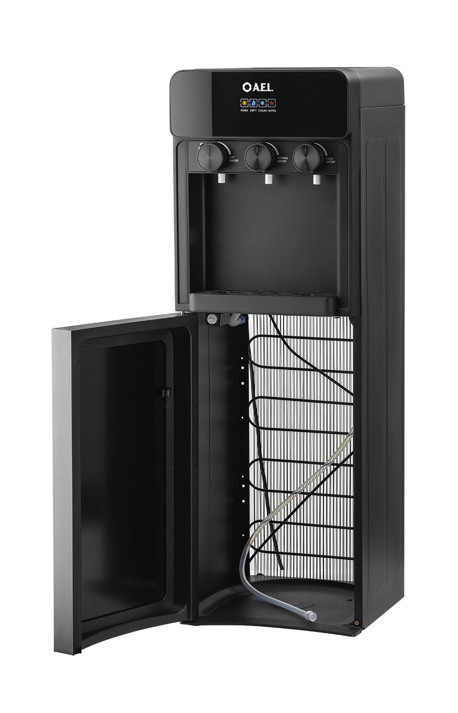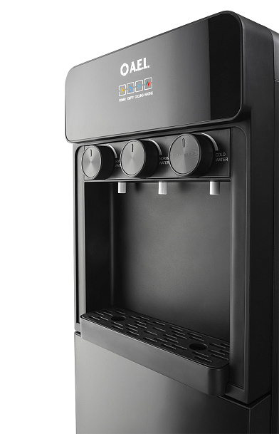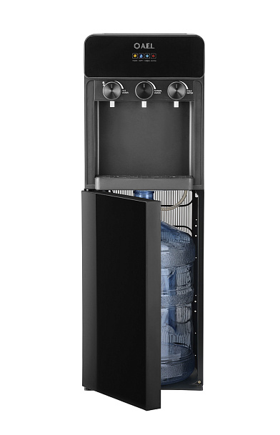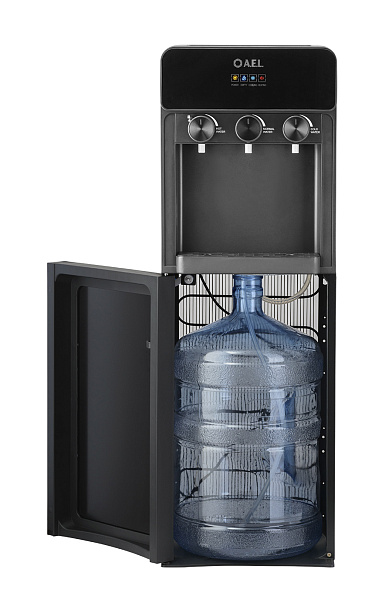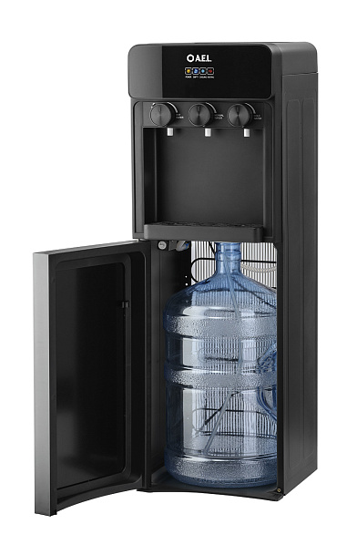 Кулер для воды LC-AEL-825a full black - напольный кулер с нижней загрузкой бутыли, с компрессорным охлаждением и поворотными кранами подачи воды. Корпус полностью черного цвета. Три крана подачи воды: горячей, холодной и комнатной температуры. На кране горячей воды располагается кнопка от случайного нажатия. В процессе эксплуатации аппарата в тот момент, когда вода в бутыли закончилась, на панели индикации загорится индикатор наличия воды в бутыли. Это символизирует о том, что необходимо заменить пустую бутыль.Рекомендованы следующие параметры бутыли 19л для данной модели - 270*270*500мм (пример Бутыль 19л. с ручкой (ЯЗН)).