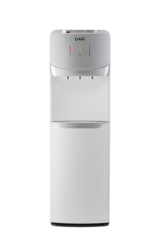 Кулер для воды LD-AEL-819a white/silver с нижней загрузкой бутыли и с электронным охлаждением. Три клавиши с защитой от случайного нажатия на горячей воде. Горячая/комнатная/холодная вода на выходе. Цвет белый глянец с серебристой вставкой.
