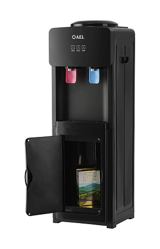 Кулер для воды LD-AEL-86с full black с электронным охлаждением с пластиковыми боковыми панелями. Корпус черного цвета, шкафчик, высота 795мм