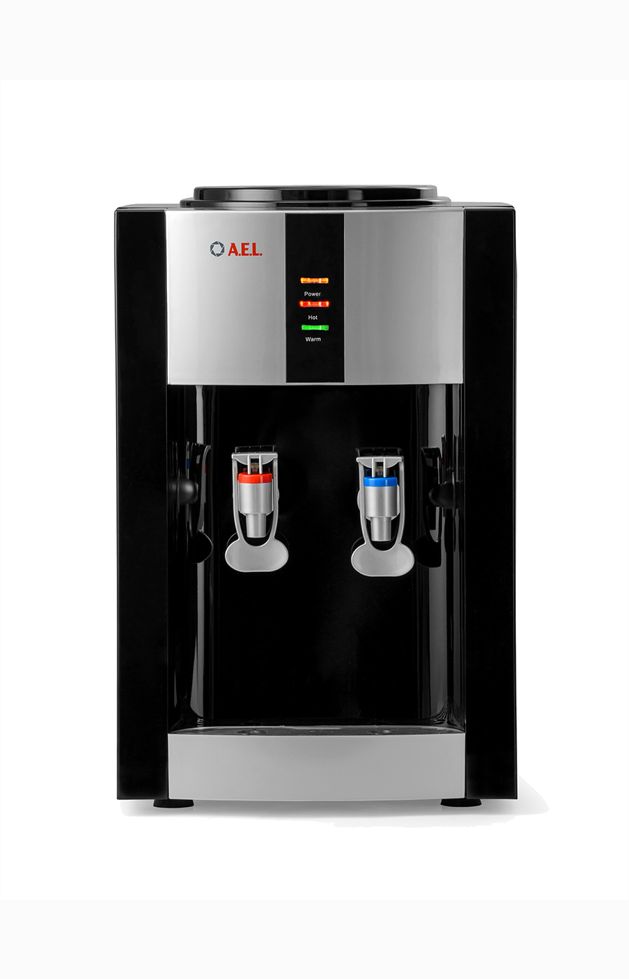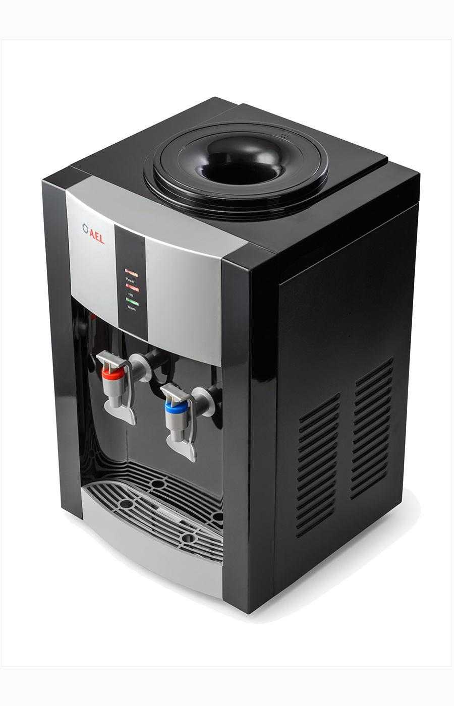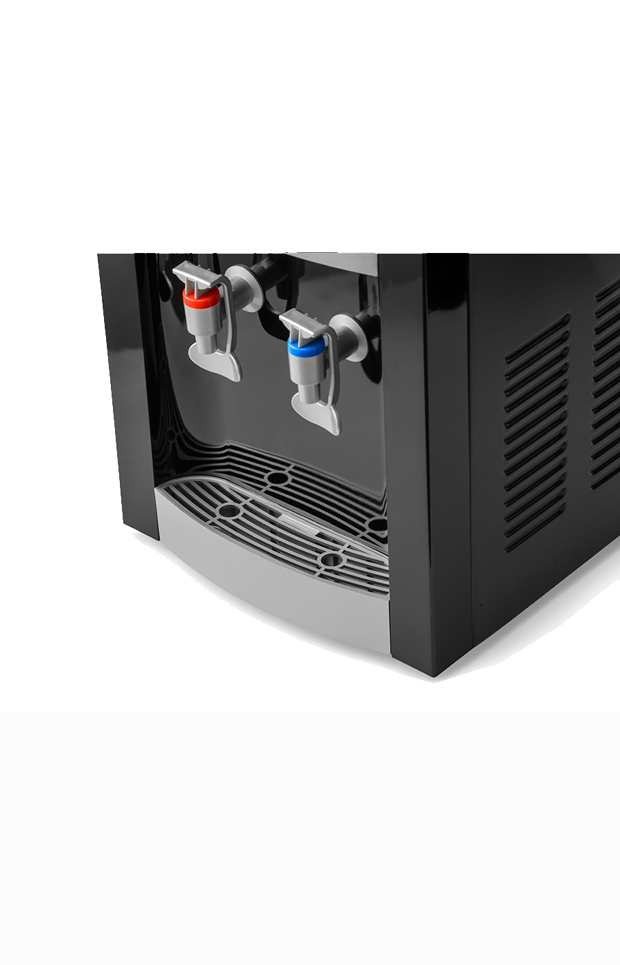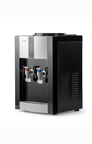 Настольный кулер с компрессорной системой охлаждения черного цвета с серебряными вставками. Отличается высокой производительностью (нагревает до 5 л и охлаждает до 2 л воды в час). Охлаждение и нагрев воды можно отключить с помощью тумблеров на задней панели кулера. Оснащен кранами типа "нажим кружкой с внутренней резьбой». Изготовлен из высококачественного пищевого пластика, а боковые черные стенки сделаны из металла, что позволяет крепить держатель на магните...