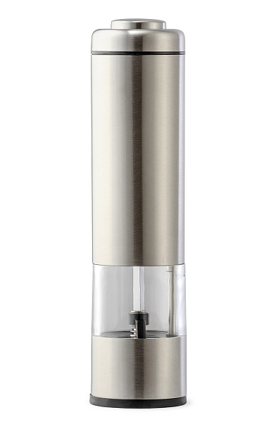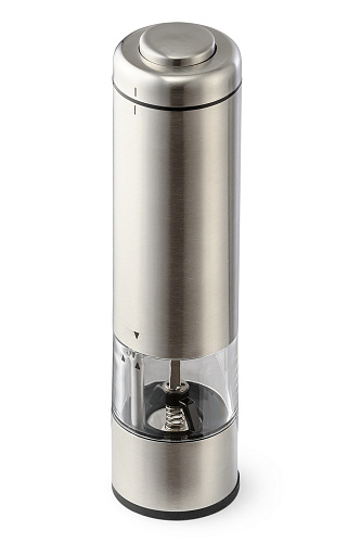 Электрическая мельница предназначена для быстрого и эффективного измельчения перца-горошка и крупной соли. Перерабатывает специи, не сминает их, достигая естественного аромата и особого вкуса. Предусмотрена возможность регулировки степени помола – грубый или тонкий. Контейнер из прозрачного акрила объемом 0,26л, корпус из нержавеющей стали высокого качества, керамические жернова, простое управление и подсветка. Прибор работает с помощью 4х батареек AA. 6В, 3Вт.