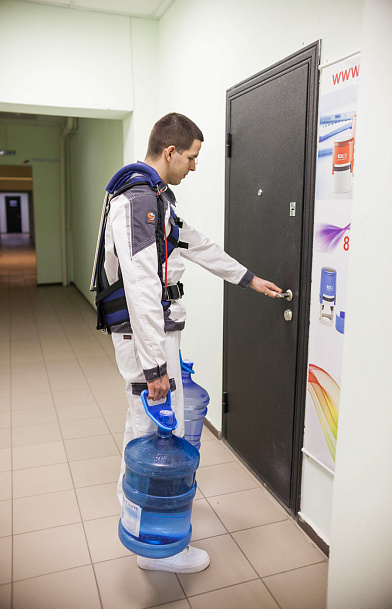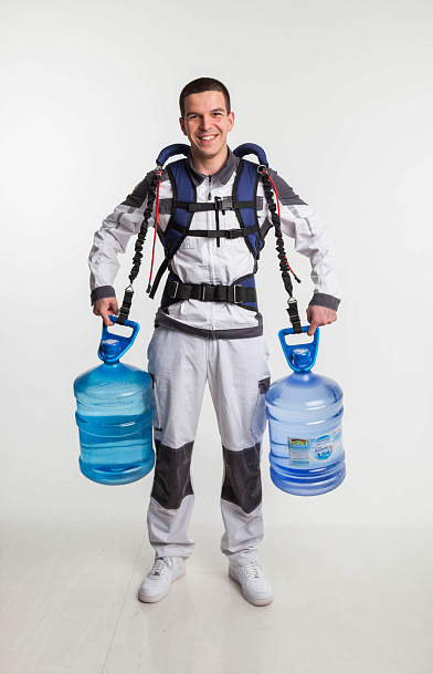 Экзоскелет в комплектации Baikal специально разработан для компаний по доставке воды. Наиболее эффективен при горизонтальном перемещении «груза» на уровне пояса