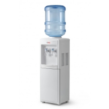 Напольный кулер без нагрева и без охлаждения со шкафчиком для продуктов. Аккуратный дизайн и малые габариты этого аппарата позволят эргономично вписаться в Ваш офис.