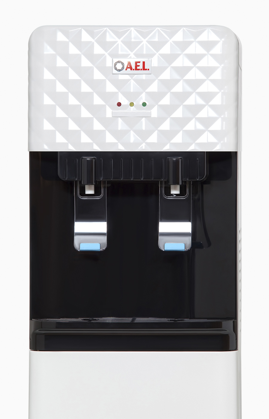 Кулер без нагрева и без охлаждения, напольного типа, для публичных мест с верхним размещением бутыли. Корпус изготовлен из пластика, боковые стенки из металла. Кулер подходит как для домашнего, так и для офисного использования, на предприятиях и учреждениях. Интересный дизайн на лицевой панели, удобные краны "нажим чашкой" и малые габариты этого аппарата эргономично впишутся в Ваш офис.