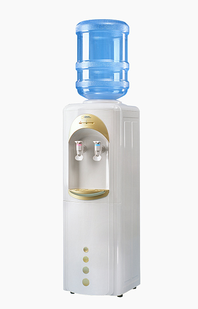 Кулер для воды с верхней загрузкой бутыли и компрессорным типом охлаждения. Нагревает большой объем воды 7,5 л в час за счет более мощного ТЭНа. Модель классической серии с золотыми вставками. Краны типа "нажим кружкой". Под кранами расположен лоток для сбора воды, что исключает ее попадание на пол. При загрязнении лоток легко извлечь и вымыть.