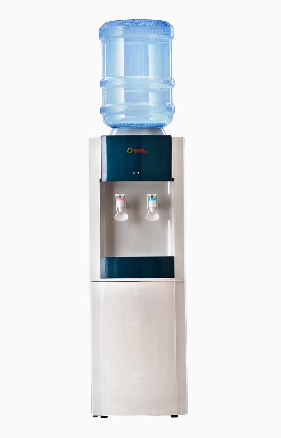 Напольный компрессорный кулер для воды в классическом корпусе со вставками темно-зеленого цвета. Оснащен холодильником для хранения напитков и продуктов на 20 литров (≅260х210х360 мм). Комфортной эксплуатации способствует наличие кранов с функцией "нажим кружкой". Обеспечивает охлаждение 2 литров и нагрев 5 литров воды в час. Корпус состоит из легкосменных панелей, изготовленных из высококачественного пластика. При необходимости нагрев и охлаждение воды можно отключить с помощью тумблеров, расположенных на задней панели аппарата.