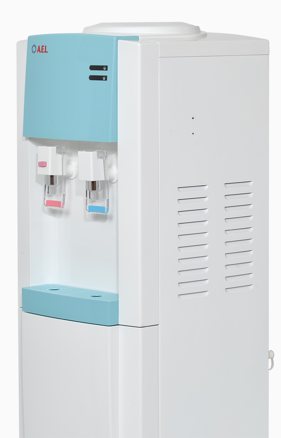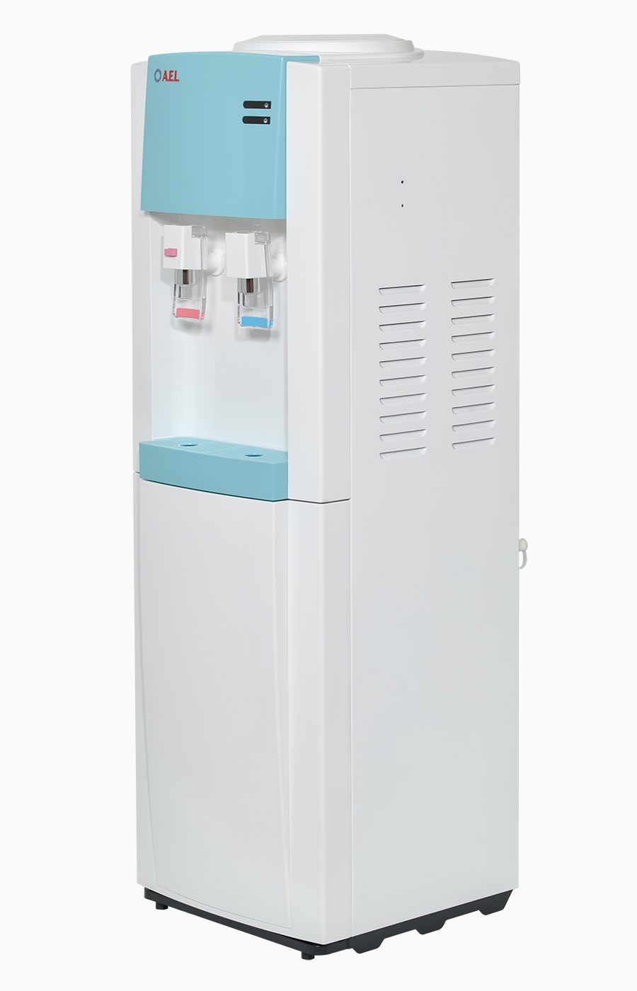 Бюджетный напольный кулер с верхней загрузкой компрессорного охлаждения. Модель выполнена в белом цвете с бирюзовыми вставками на лицевой панели и лотке. Производительность холодной воды - 2 л/час, горячей воды - 5 л/час. Удобные краники «нажим кружкой» с внутренней резьбой, которая позволяет при необходимости легко и быстро их менять. Кран горячей воды оснащен кнопкой-защитой от случайного нажатия..