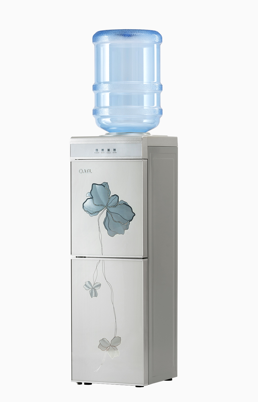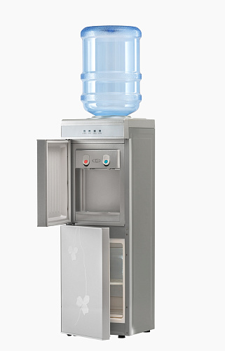 Красивая презентабельная модель. Кнопка для налива горячей воды оснащена защитой от случайного нажатия. На лицевой панели вставка "цветок". Аппарат с холодильной камерой на 20 л для хранения продуктов и дверкой, закрывающей рабочую зону клавиш подачи горячей и холодной воды.