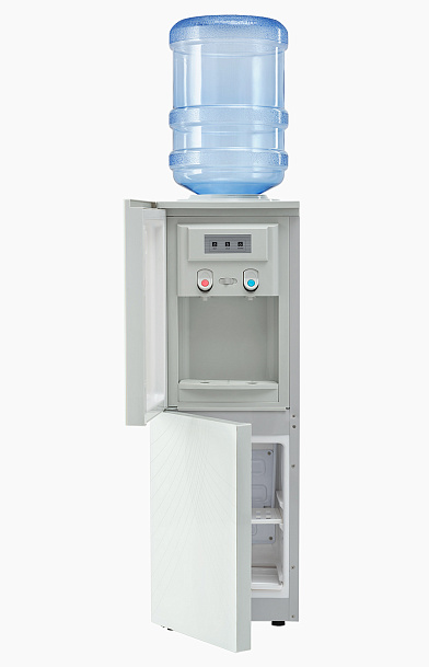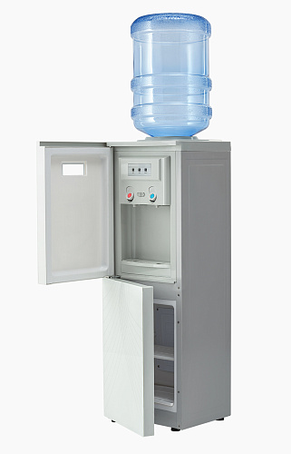 Выполнен в стильном корпусе белого цвета с декоративной вставкой "лебеди", что сделает его интересной деталью офисного помещения. Область краников-клавиш закрывает дверца. Клавиша для налива горячей воды оснащена защитой от случайного нажатия. Имеет холодильное отделение объемом 12 литров, которое позволит использовать кулер в кухонном помещении офиса.