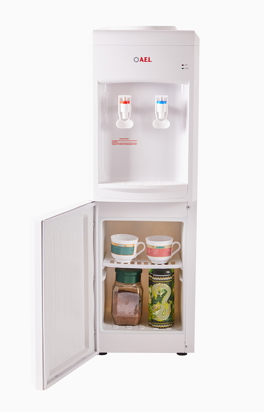 Новинка в линейке бюджетных моделей - напольный аппарат с компрессорным охлаждением ровного белого цвета. Производительность холодной воды - 2 л/час, горячей воды - 5 л/час. Тип кранов подачи воды "нажим кружкой". Оснащен шкафчиком на 16 литров.
