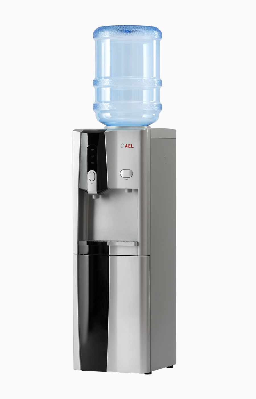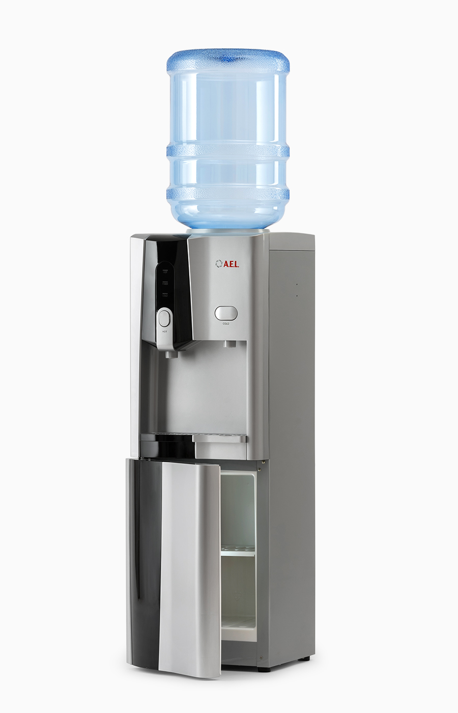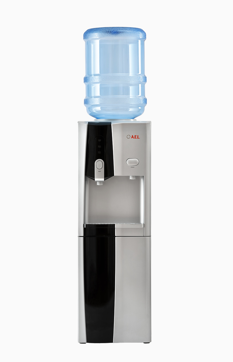 Красивая, элегантная модель серебристого цвета с черной вставкой. Удобная подача воды с помощью клавиш-кнопок на лицевой панели. Электронное охлаждение. Предусмотрен шкафчик 16 литров (≅240х160х320 мм).