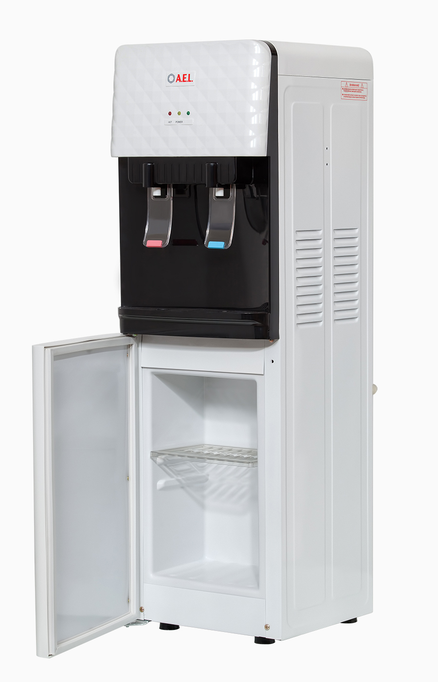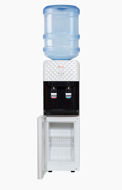 Представляем новинку в ассортименте АЕЛ недорогой напольный кулер для воды с верхней загрузкой бутыли в корпусе белого цвета с черными вставками. Модель без охлаждения, с нагревом 5л/ч и шкафчиком для продуктов. Интересный дизайн на лицевой панели, удобные краны "нажим чашкой" и малые габариты этого аппарата эргономично впишутся в Ваш офис.