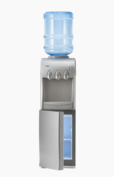 Кулер с объемным холодильником на 20 литров (≅240х210х360 мм), способный с помощью удобных кнопок-клавиш подавать горячую, охлажденную и воду комнатной температуры. Мощный нагрев и надежный компрессор делают модель востребованной как в офисе, так и дома. Современный дизайн. Аппарат укомплектован новым нагревательным элементом донного типа, не контактирующим с водой напрямую.
