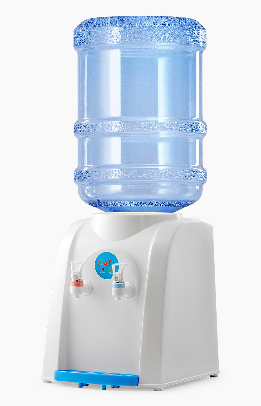 Настольный кулер для воды с верхней загрузкой бутыли без функции охлаждения. Нагревательный элемент в аппарате мощностью 500 Вт позволяет за час получить до 5 л горячей (90-95 градусов) воды. Имеет компактные размеры, благодаря чему легко устанавливается на стол или тумбочку не загромождая пространство. Оснащен двумя механическими кранами типа "нажим рукой" для подачи горячей воды и воды комнатной температуры. Корпус изготовлен из высококачественного пищевого пластика. Кулер подходит как для домашнего, так и для офисного использования, на предприятиях и учреждениях. Расстояние от краника до лотка 15см.