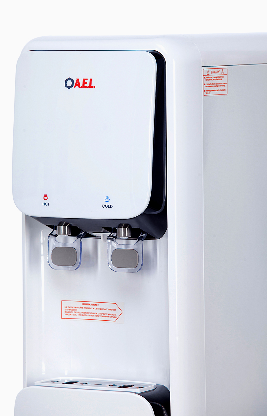Новая модель смело занимает свое место в ряду элитных пурифайеров для требовательных клиентов. Высокий элегантный корпус современного солидного дизайна. Белый цвет ровного приятного оттенка. Данная модель хорошо впишется в строгий дизайн кабинета и офиса, а удобные краны нажим чашкой, расположеные на комфортной высоте для пользователя, дополняют образ.