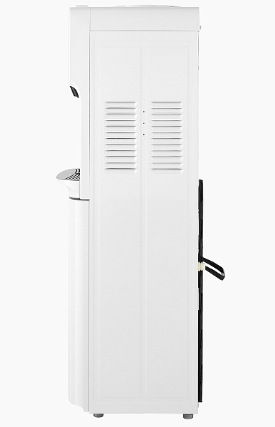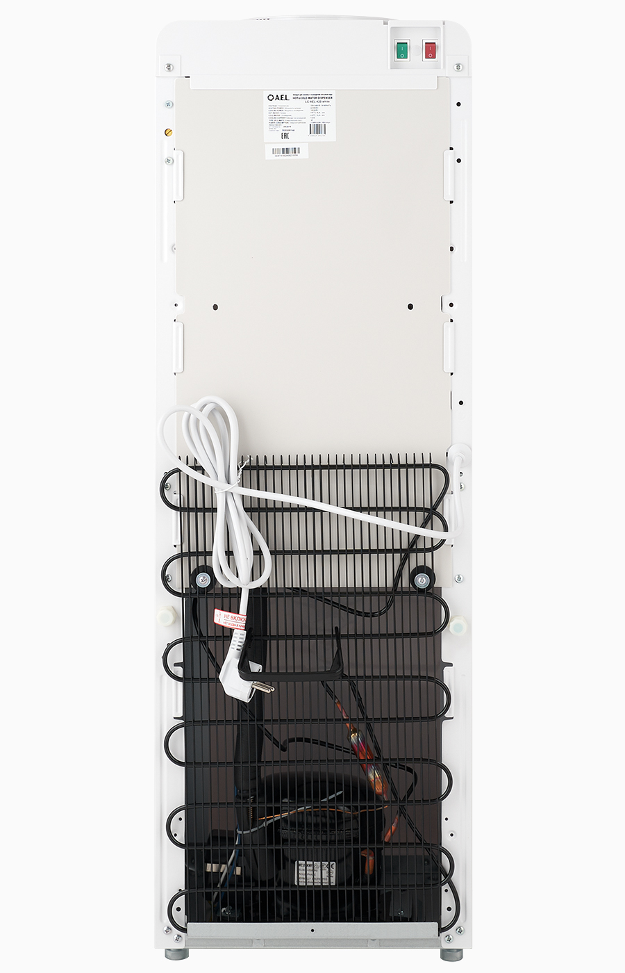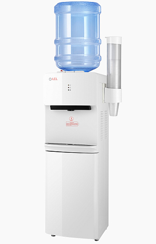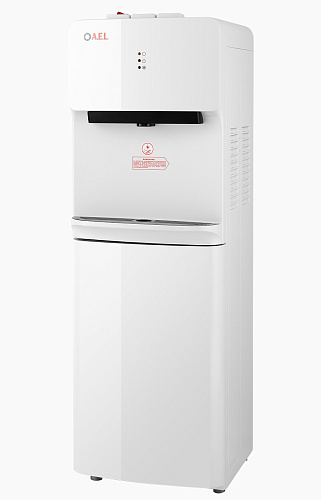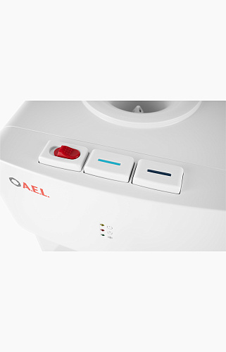 Новинка в ассортименте АЕЛ - напольный кулер с верхней загрузкой бутыли с компрессорным охлаждением яркого белого цвета с черными вставками. Высота кулера 930мм позволяет комфортно нажимать на три клавиши, одна из которых - горячей воды имеет защиту от случайного нажатия.