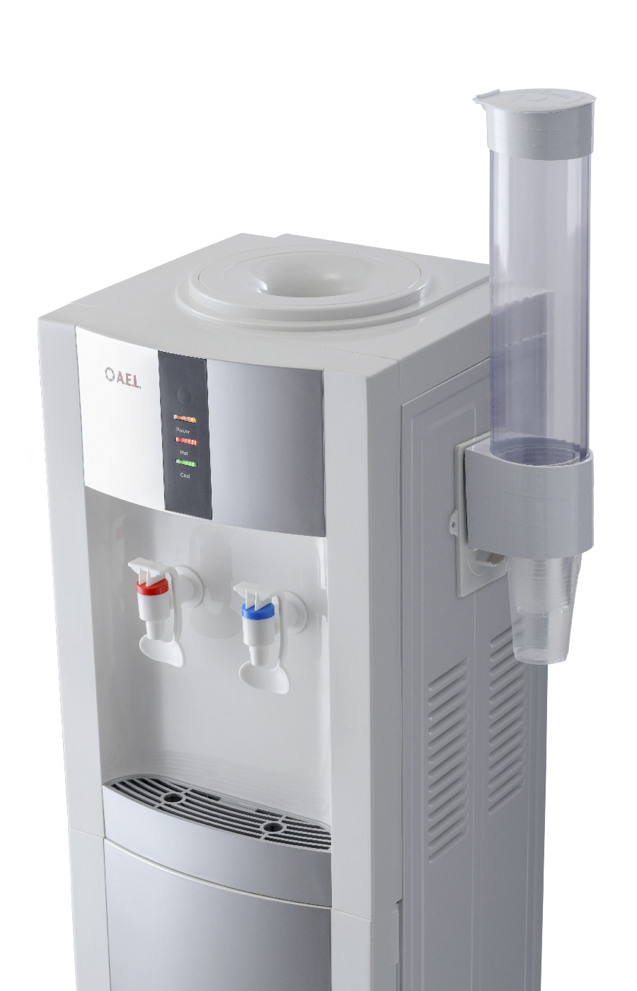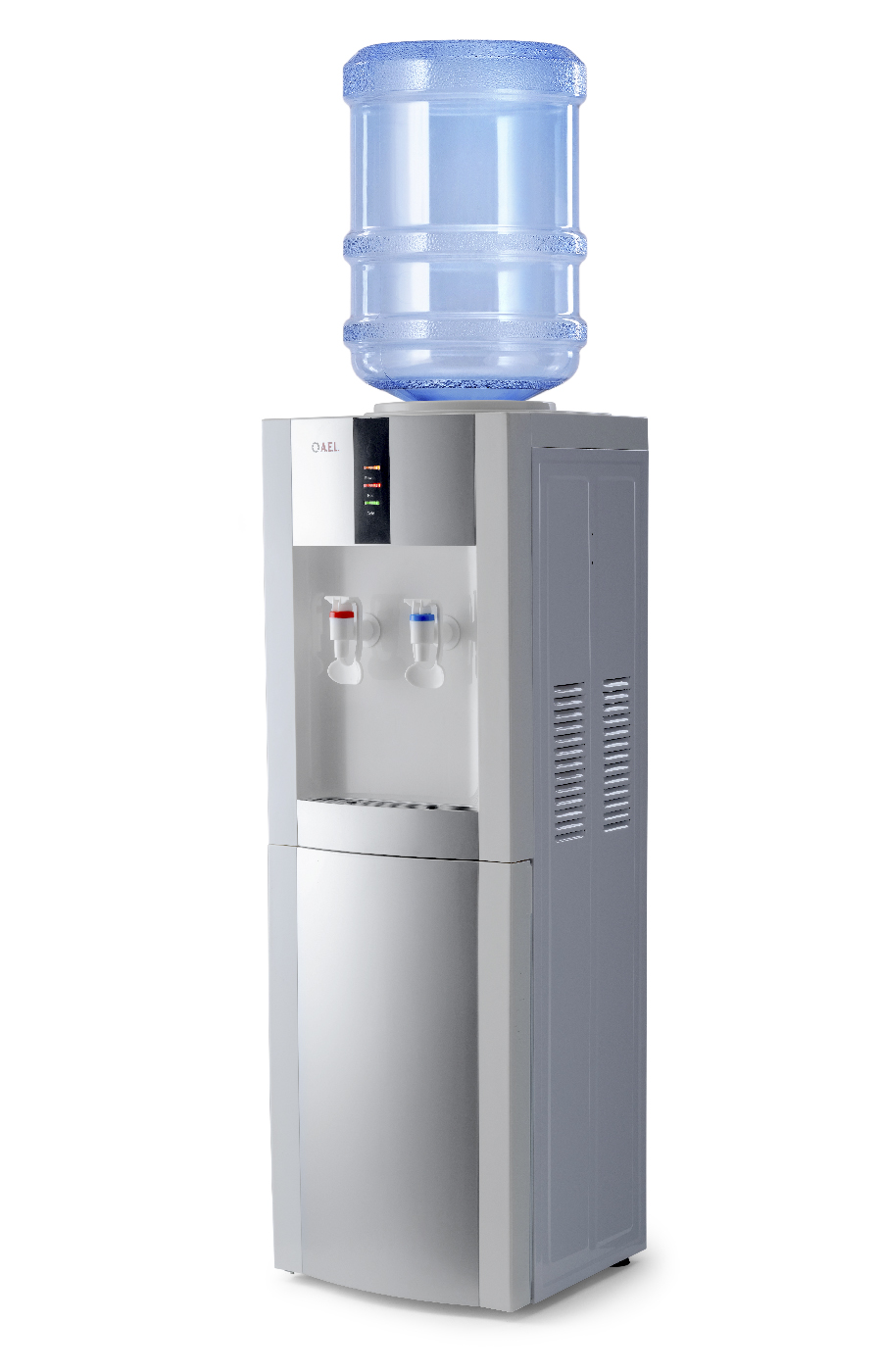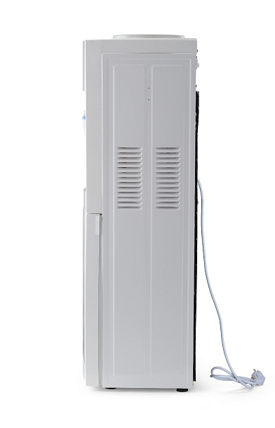 Напольный кулер с компрессорным охлаждением и с шкафчиком. Цвет белый с серебряными вставками. Модель отличает стильный дизайн и широкий функционал. Кулер с высокой производительностью, благодаря чему за один час можно получить 5 литров горячей и 2 литра холодной воды. Для быстрого и удобного наливания воды в стакан или чашку предусмотрены два крана (холодный и горячий) с механизмом «нажим кружкой». Устройство подойдет для оснащения офисов и предприятий с большим количеством сотрудников.