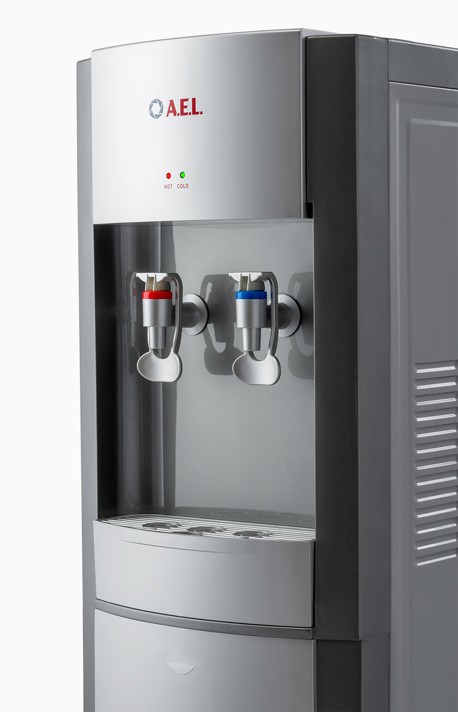 Бюджетный кулер с верхней загрузкой электронного охлаждения. Краники "нажим чашкой" с внутренней резьбой. Цвет: темно-серый с серебряными вставками. Боковые стенки выполнены из металла серебристого цвета. Кулер удобен для офисного использования.