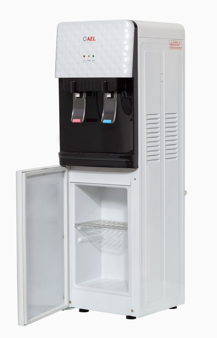 Новинка в ассортиментной линейке АЕЛ - напольный кулер с электронным охлаждением и шкафчиком для продуктов. Интересный дизайн на лицевой панели, удобные краны "нажим чашкой" и малые габариты этого аппарата эргономично впишутся в Ваш офис.