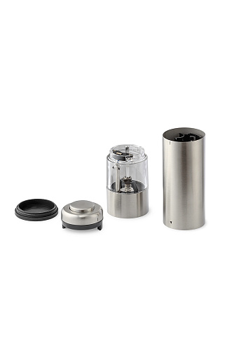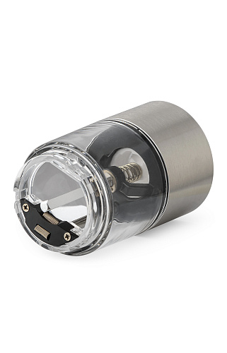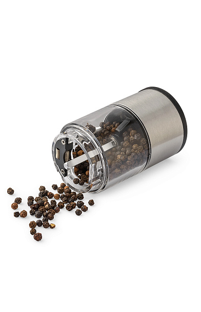 Электрическая мельница предназначена для быстрого и эффективного измельчения перца-горошка и крупной соли. Перерабатывает специи, не сминает их, достигая естественного аромата и особого вкуса. Предусмотрена возможность регулировки степени помола – грубый или тонкий. Контейнер из прозрачного акрила объемом 0,26л, корпус из нержавеющей стали высокого качества, керамические жернова, простое управление и подсветка. Прибор работает с помощью 4х батареек AA. 6В, 3Вт.