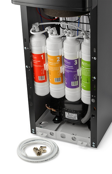 Пурифайер-проточный кулер для воды Aqua Alliance A60s-LC black c компрессорным охлаждением и с 4х UF-системой очистки. Модель комплектована удобными краниками нажим чашкой c защитой от случайного нажатия. Бак холодной воды 7л. Бак горячей воды 5л. Цвет: черный глянцевый корпус. Комплектация: кран врезки, трубка ¼ 3 метра, фильтры 12 U тип, инструкция. Сделано в Корее.
